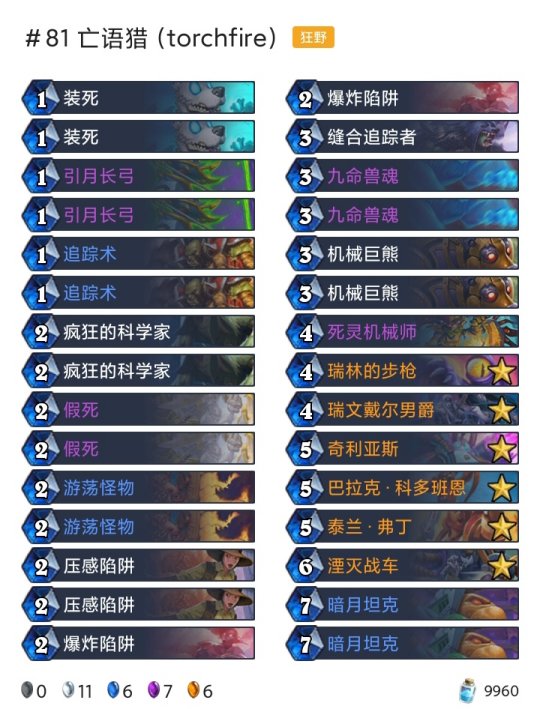 猎人:奇数任务猎(传说22),亡语猎(传说81)