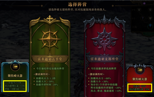 阵营的激活属性只针对变化技能牌属性。1.2倍就是+20%,追求技能输出最大化的选择右方+80%,使用多个技能来加快技能冷却恢复速度;主保技能冷却时间较长(40秒以上)的,推荐选择左方,尽可能压缩冷却时间。