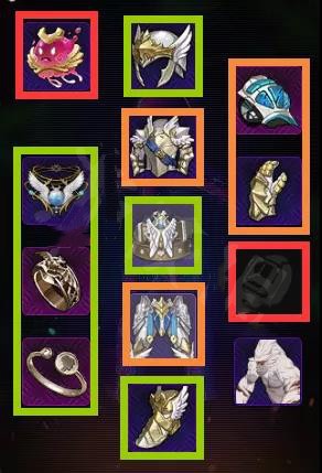 (2) 装备的不同加成我用不同颜色的框标识出来了: