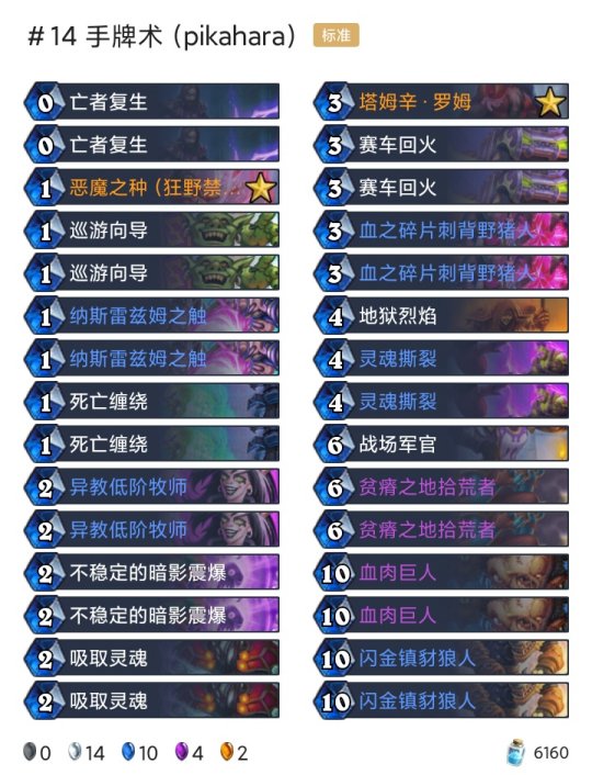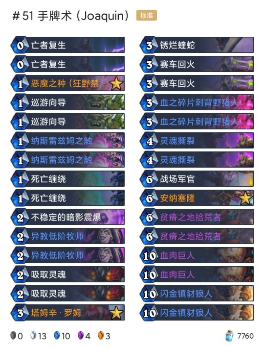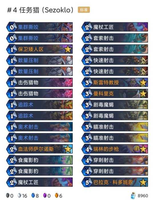 炉石传说每天都有新的卡组被研发出来,不管是狂野模式还是标准模式,尽管两个天梯的卡牌是不一样的,但还是有很多高分的卡组诞生,下面就为大家带来了具体10月1-8高胜卡组介绍.