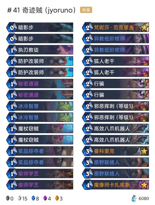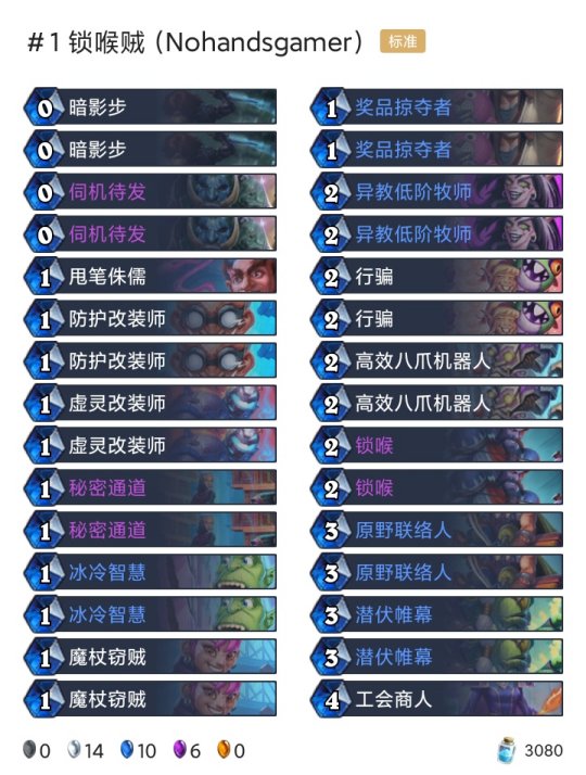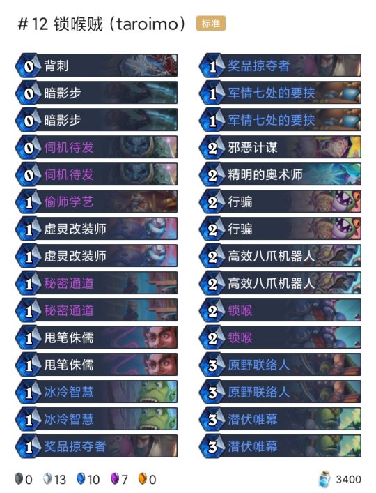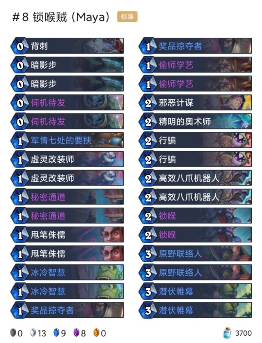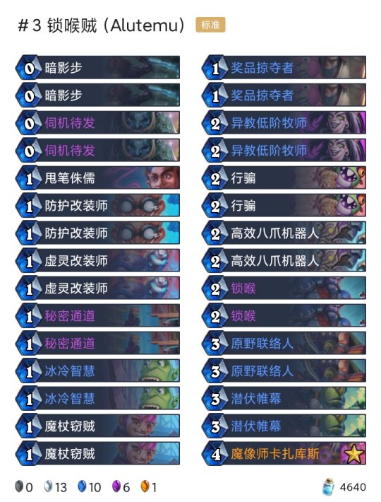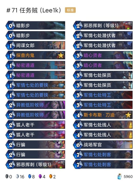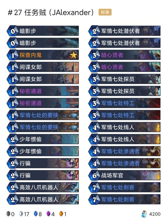 潜行者:锁喉贼(登顶),锁喉贼(传说3),锁喉贼(传说8),锁喉贼(传说12),任务贼(传说27),任务贼(传说71),奇迹贼(传说41)