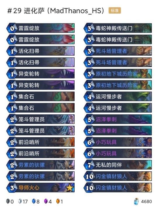 萨满:元素萨(传说2),元素萨(传说5),进化萨(传说29)