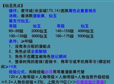 3.仙玉重置:仙玉重置属性和转门派的花费是一样的,无论是仙玉消耗还是经验消耗都是一致的,各等级具体消耗如图所示: