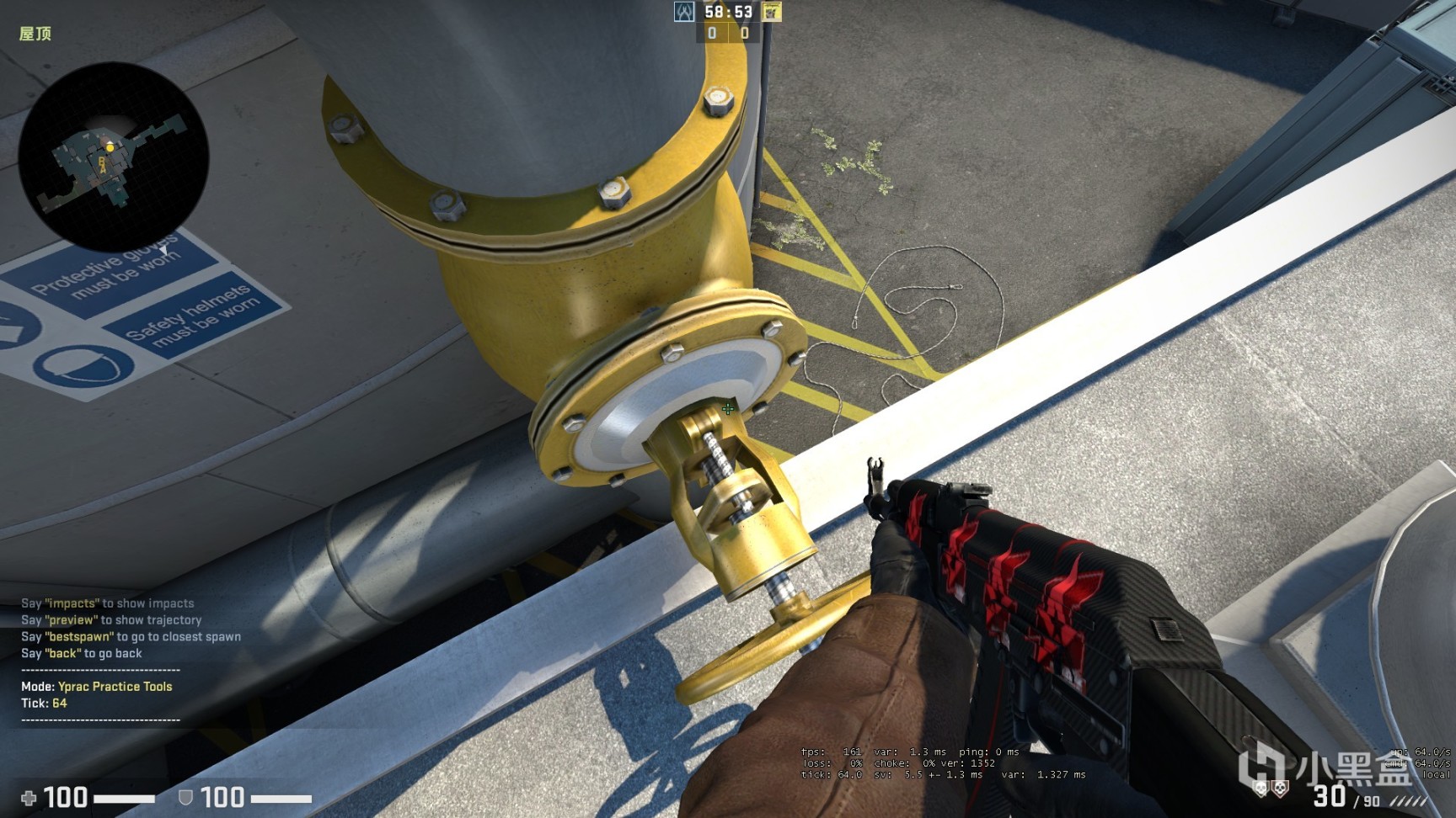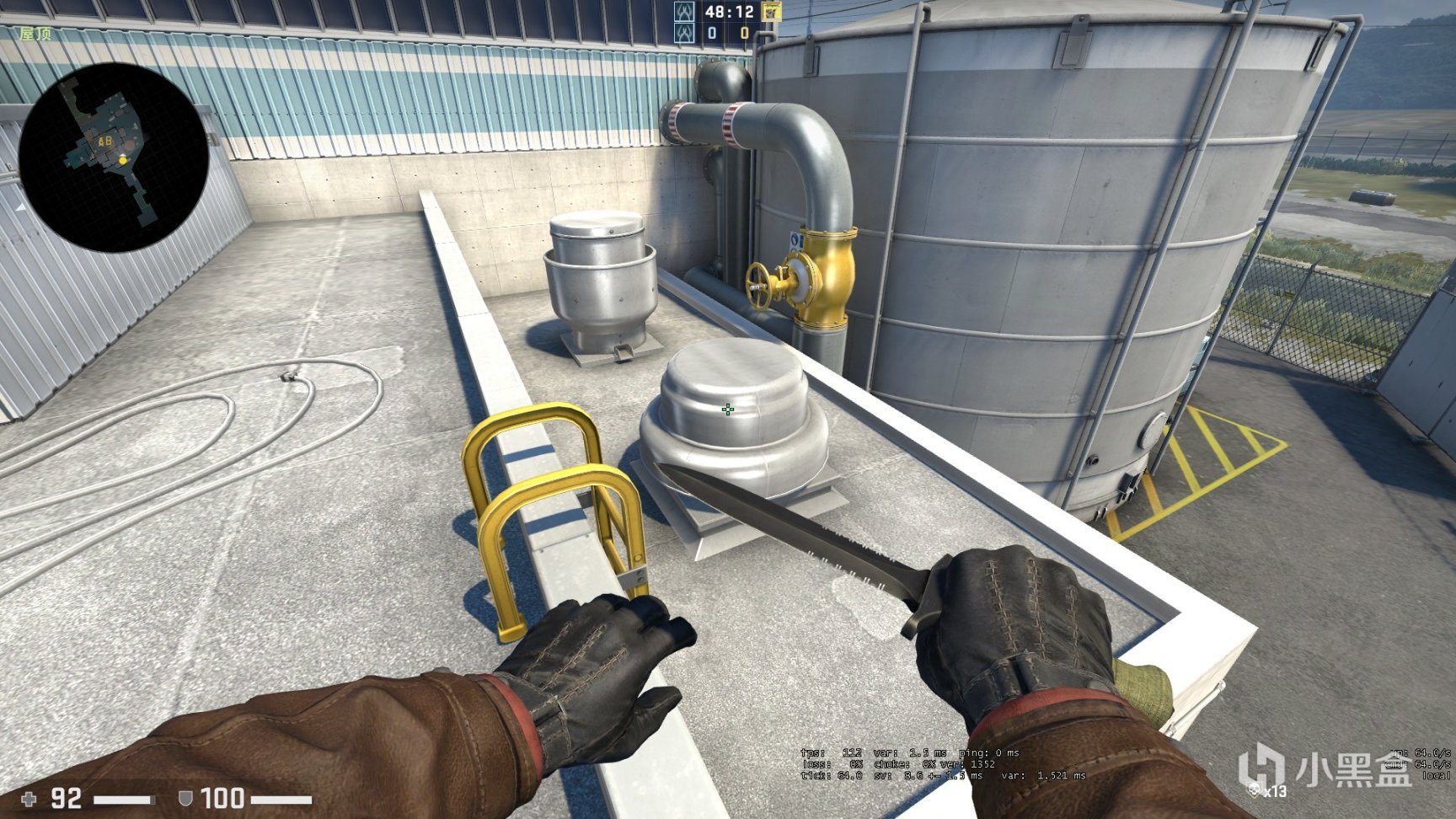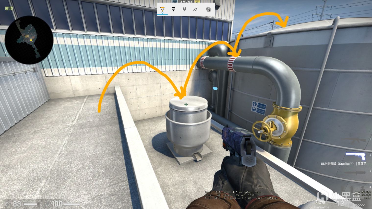 或者先跳到矮的这个罐子上跳到黄色阀门上(也可以直接从屋顶跳到黄色阀门上)