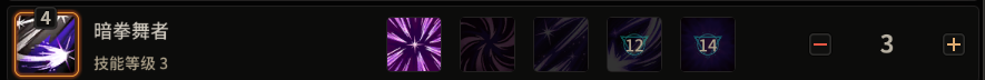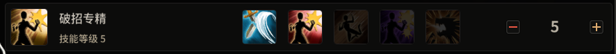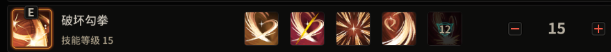 视频中忘记加了,破环勾拳是要满的。打爆发必备技能~我舍弃了视频中的破招来吧勾拳点满了,现在的等级。技能点严重不够用。