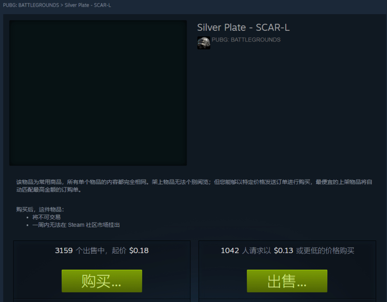 单个聚合物40(箐英系列紫色),镀银12k,镀银scar-l,沙漠迷彩m416,黄金狗砸,黄金sks,awm等等,看了一下也就镀银s12k和镀银 scar-l.少量沙漠迷彩m416便宜,单价不超过0.3美元和2元可以收!顺便说一句镀银scar-l现在掉价比较厉害搞聚合物的可以趁机买一点