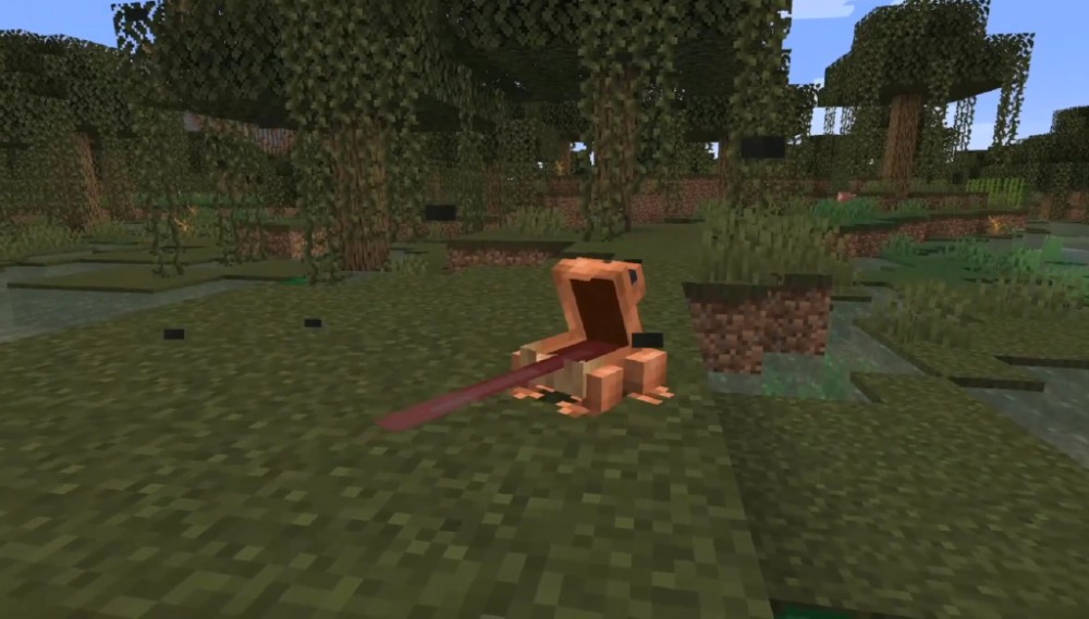 青蛙会拥有两个生长阶段,蝌蚪时期只能栖息在水中,而长成青蛙后会在荷叶上跳跃。青蛙还有两个环境变种,分别是寒带蛙和热带蛙,会在寒冷和干燥群系生成,同样有两个生长阶段。