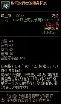 时间旅行者的随身怀表作为一个85史诗在90版本海博伦未成型前一直都是一个非常不错的左曹,虽然没有加成属性,但是减CD和技能等级的提升都让玩家对其爱不释手。