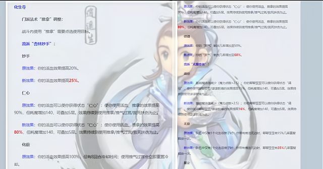 化生寺三个流派均有改动,两个辅助流派均有小幅加强!法系输出流(无量尊者)法连几率提高,对于PVE而言算是锦上添花吧!