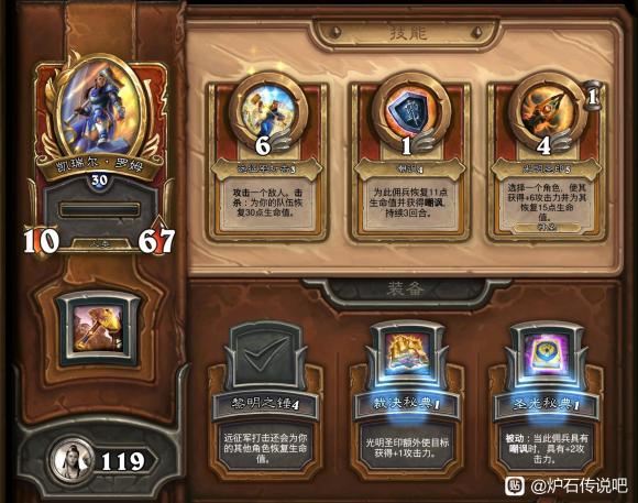 3速的致盲之光配合装备强光魔杖最高可打14点伤害和减12点攻击。克制绝大多开局攻击的英雄。