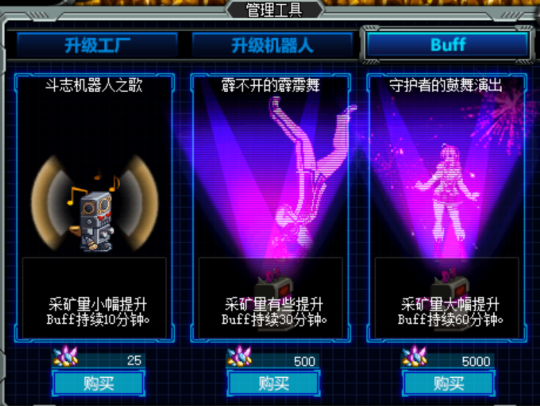 这里就没必要多说了,就是采矿,买buff,解锁地图,升级工厂和机器人