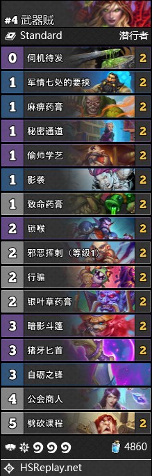 武器贼的存在意义:狙击任务卡组!喜欢带任务是吧,喜欢拖后期是吧,洗内!这周任务法,任务猎的热度并没有降低,武器贼仍然有其用武之地。但永远记住这不是常态,只要环境中任务卡组的比例降低,就要迅速刀枪入库马放南山。这时你反而变成了快攻德的食粮。