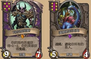 这两个流派可以一起说,他们都是前期强势、中期疲软、后期没找核心卡就瞬间暴毙的流派,鱼人流找巨壳龙,恶魔流找二王,但这两个随从一个是5费一个是6费,吃鸡难度很大非常不推荐。