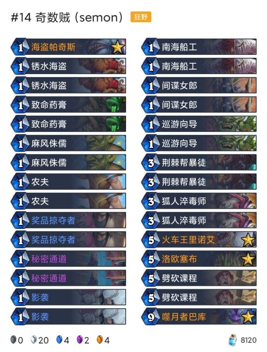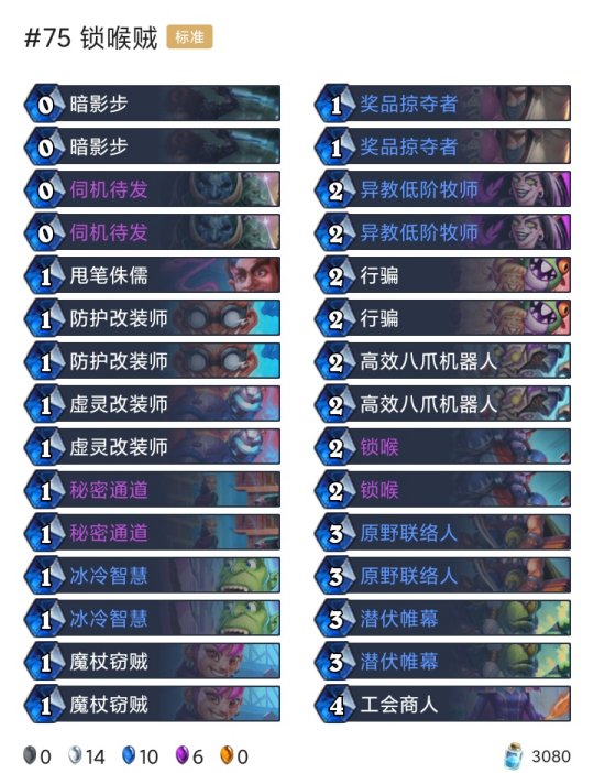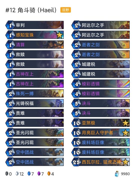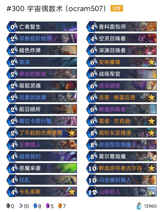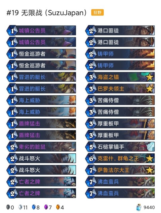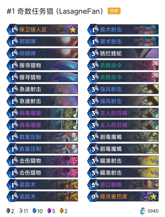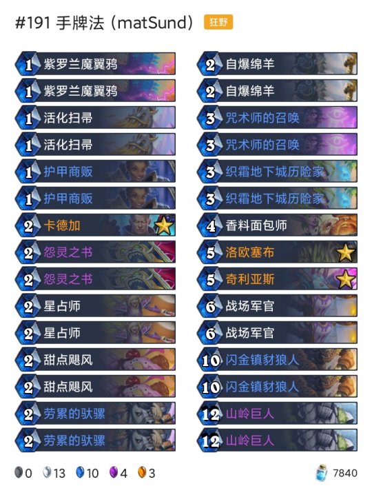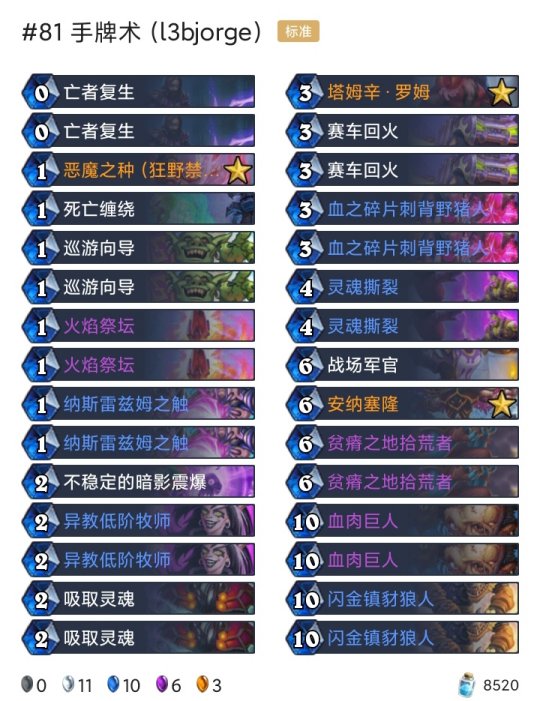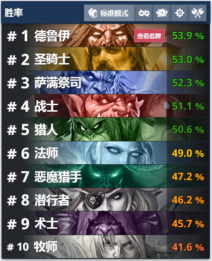 炉石传说每天都有新的卡组被研发出来,不管是狂野模式还是标准模式,尽管两个天梯的卡牌是不一样的,但还是有很多高分的卡组诞生,下面就为大家带来了具体10月19-25高胜卡组介绍.