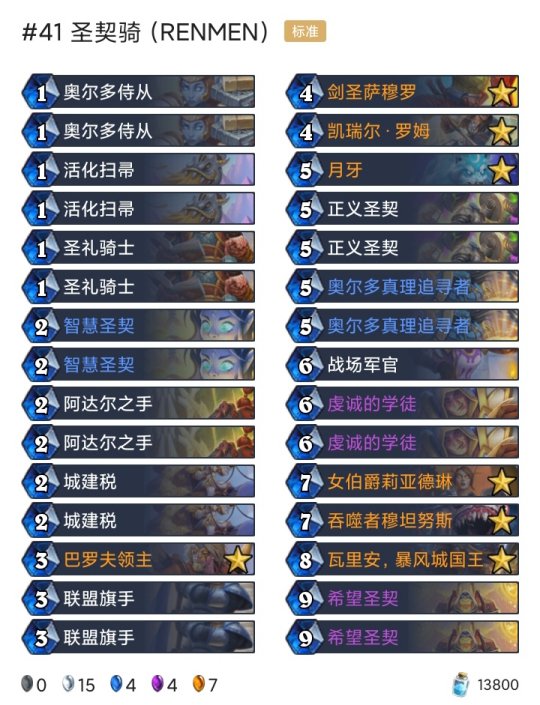圣骑士:圣契骑(传说41),奥秘圣契骑(传说168),污手骑(传说261)