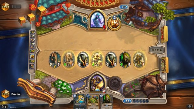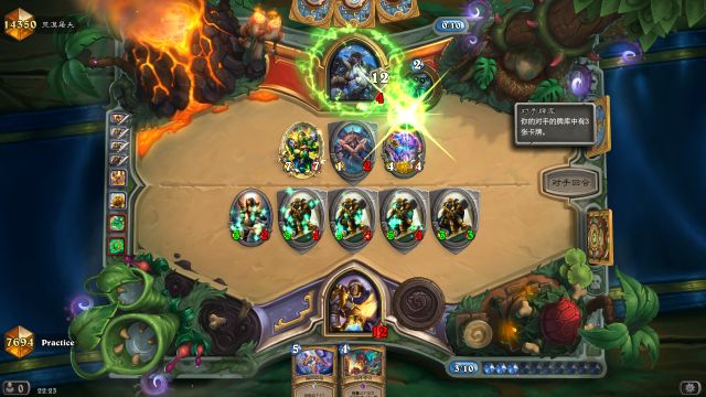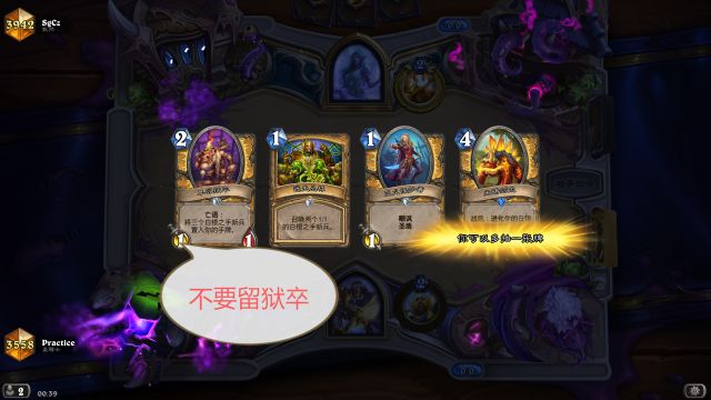 4,打牧师因为不知道形态,所以起手有2费随从的情况下 不要留狱卒,会吃疯狂药水,少了3个报告兵会很伤 还顺便解了你一个报告。如下图 起手你有低费随从的时候 不要留狱卒