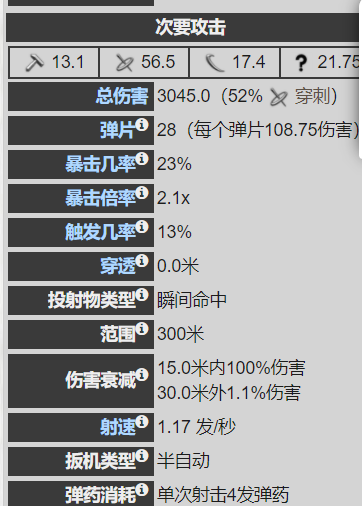 看一眼次要的面板就知道个大概了吧。其实次要就是四管齐射,一枪打出去四发,这样就拥有了极高的多重。叠满镀层能接近100多重,非常恐怖,而同时元素加成加持下,双暴也不算太差,单发的伤害也不低。我们再来回顾一下玄骸的减伤,里面有几个关键点,一是伤害上限,二是变动的减伤率。我们来看海克,一发就打出去上百弹片,你有伤害上限我不怕,我弹片多,而且我就打一发,在打你之前你知不知道我的伤害是什么水平?不知道,也就没有根据我的伤害先变化的一个减伤率,这样就使得在这一发中获得了相对较低的减伤,同时靠极多的弹片数,成功灌死玄骸,基本是能一枪一管血,要是秒不掉就削个甲。