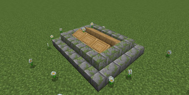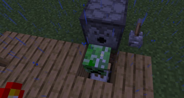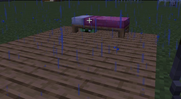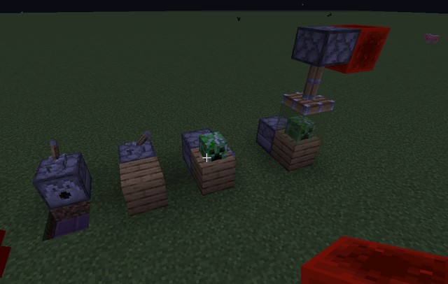 只要从原本的地板开始往下挖两格深,放一个阳光传感器,利用发射器在阳光传感器上放置一个盔甲架,并且给他套上一个苦力怕头套,然后利用活塞推一个木板方块进去隐藏一下空的地方,再放张床就好啦~