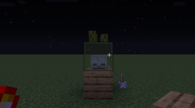 首先呢,咱们在地上挖一格,然后放置下半砖,将顶上封上,然后用发射器发射一个盔甲架到前面的木板里,并给它装上冒险家们喜欢的、想展示的奇怪东西,最后用活塞把玻璃推到木板上就行了~