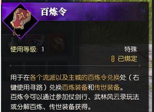 4.百炼令:副本仗剑行,武林风云录,团本舞阳城或者分解百炼以及传世装备获得(或者向玩家购买)