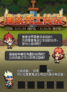 DNF像素勇士2.0开启时间是2021年11月18日更新维护之后,这次像素勇士的玩法和上次一样,不过玩家可以利用自己的操作去击杀怪物,从而花费更少的时间刷完疲劳升级。