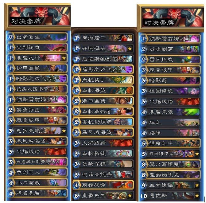 对阵优劣:上面2套,打法系优势,打骑士,打铺场德大劣势。对阵海盗战前期五五开。