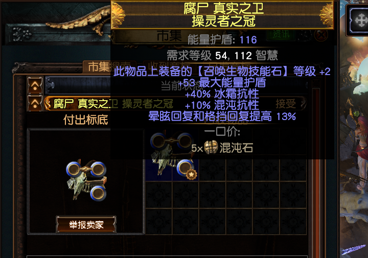 3、头:高护盾+2头,最好空一后缀,可以工艺抗性或者属性,后缀自带抗性或者属性更好(一定要+2,这样灵体才能到25级,多召一个灵体)