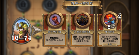 兽人队稳定的第二点就是大酋长的祝福(让友方部落角色加攻击力与血量,并且减少所受到的伤害),这个祝福在这个队伍只有萨尔、加尔鲁什会选到,就算没选到,这两人也有机会选到部落的祝福(让友方部落角色增加攻击力与血量)或是让友方恶魔或兽人增加攻击力与血量的那个宝藏。