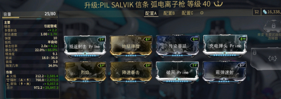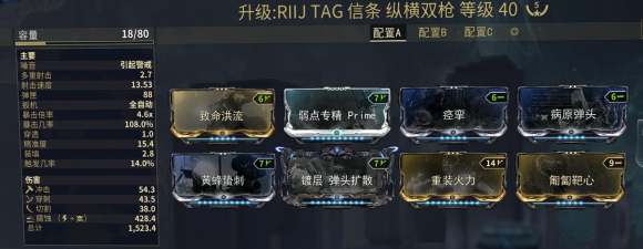 信条c喷相比于原版提高了暴击倍率和面板,代价是射速降低了一些。楼主脸黑连续捅两个25%没幻纹,所以加成就只有27.4%,选的火,选电,毒也可以。