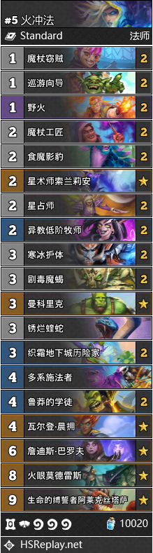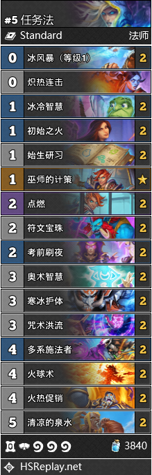 炉石传说的设计师你没有心,任务法胜率那么弱还要削弱?但从论坛的玩家反馈来看,甚至有不少法师玩家都支持这个改动。法师已经有很长时间都在折腾法术体系了,如果任务法不挨刀的话,未来几个扩展包的新卡会陷入设计困境。任务法的削弱,也许能够为一个月后的新扩展包带来变数。如果你对火冲法感兴趣的话,可以尝试一下这个构筑,实际上迷你扩展包补强有限。如果非要带上一张新卡,笔者推荐多系施法者,稍微加强卡组的过牌能力,但具体孰优孰劣目前还不明朗。