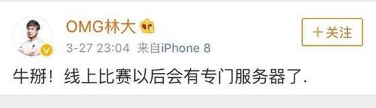 近日OMG战队的经理林大在微博上爆料,以后线上比赛都会有专门的服务器了。消息一出各路小伙伴们都惊讶不已,因为现在用的服务器经常出现这样或者那样的问题,ping过高啊,延迟过高等等,影响职业选手的发挥,但是这次不同了,蓝洞可能会开启一个专门的服务器供职业选手来进行比赛,这样很有可能可以保证比赛0延迟!
