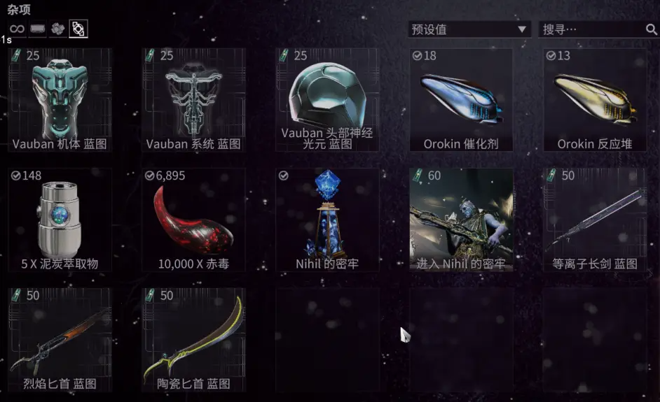 杂项类:本周是等离子长剑、烈焰匕首和陶瓷匕首蓝图。NIHIL密牢的钥匙又来了,玩家在轨道飞行器内或者道场对着NIHIL的密牢按下互动键即可进入挑战,第一次挑战完成后会获得金璃剑蓝图。再次挑战会获得一张随机紫卡。NIHIL的密牢可以放置在氏族道场,供氏族其他玩家使用钥匙进入,相当于帮助萌新节约60电波币。大佬们可以酌情考虑。