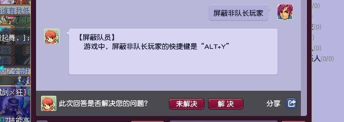 ATL+Y屏蔽非队长玩家。另外摊位多的时候ALT H还可以去掉摆摊名,人多的时候F9屏蔽除自己以外的玩家。
