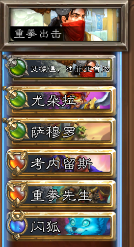 一套以重拳先生为核心构筑的卡组,落水追击配合牺牲祝福可以让重拳先生一直a到考内留斯死了为止,而且能叠好多生命。