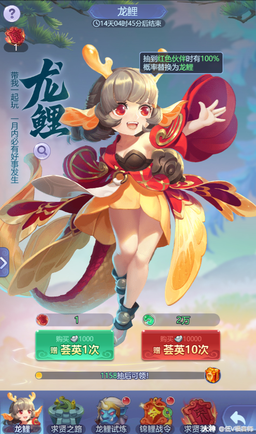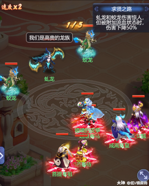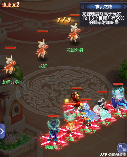 2.龙鲤的PK还是很强的,前2回合增伤100%,很适合法伤流朋友用,1X的话多了一个强力PK伙伴,加全体速度,自己本身12回合输出达到