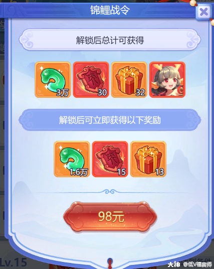 ※个人建议,一般人就买后面的98元战令,拿到的红牌子抽出1X就可以了!具体理由后面说!