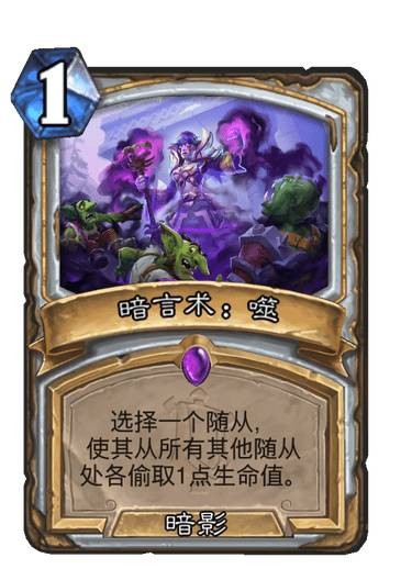 游戏《炉石传说》中,2021年新版本“奥特兰克的决裂”终于来临了,在这次的新版本中有135张全新的卡牌,其中就包括暗言术:噬这张卡牌,下面就给大家带来奥特兰克的决裂暗言术:噬卡牌介绍,大家一起来了解一下吧!
