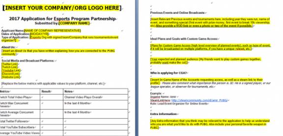 示例:PUBG Esports - Online Charity Invitational - Application for Esports CGA