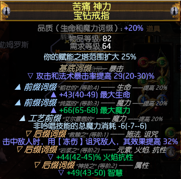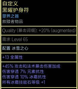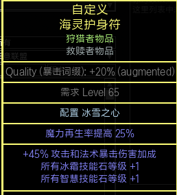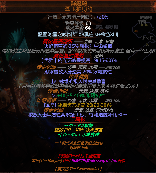 制作方法:塑界项链洗出穿抗,82及以上物等救赎项链洗出+1,合成后确保空1条前缀,锁前冰霜C,没出冰穿就赌剥离,失败从头再来。成功则锁前继续做后缀。