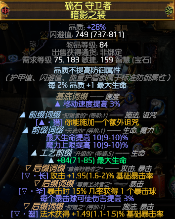 其中暴击时施放为必要词缀,T1T2均可;T1穿透大于全部技能+1约等于T2穿透,T3穿透不建议将就。