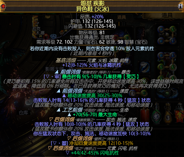 为什么不限定86物等的鞋子是因为我们这套做法需要通过小爱来获得移速词缀,并不需要35%移速。如果追求T1抗性/法术压制,可选用85+物等。