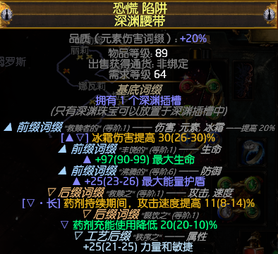 制作方法:80+物等救赎深渊腰带用庄园冰霜C/冰化石点出T1冰伤/击中冰缓伤害+生命即可,后缀随意操作,缺啥补啥。