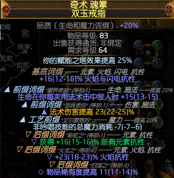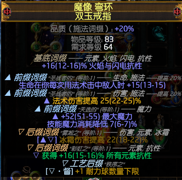 击回戒指:施法/强化生命C或以太/原始化石点出T1法术击回和高生命且空1前缀即可,缺抗补抗,附魔-7,品质打命魔。