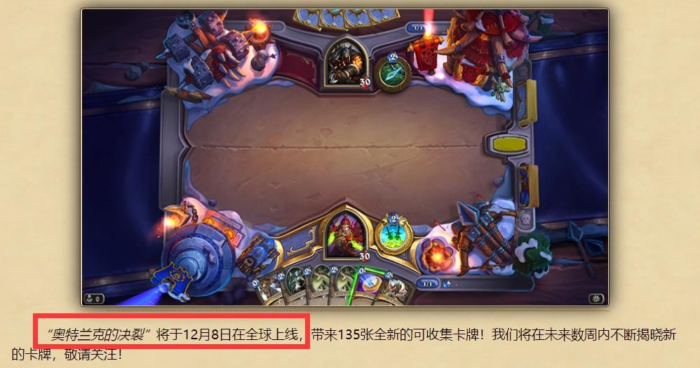 1、炉石传说奥特兰克的决裂将于12月8日全球上线。