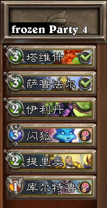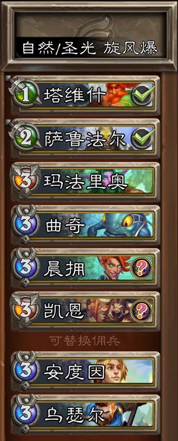 我们先说一下前两套的阵容思路,具体是针对暗影剑、蛋冰等卡组首发萨鲁法尔+雷矛+晨拥(有时根据对手红绿蓝数量变阵),后续使用自然队或是圣光队进行赖场(提示,曲奇、牛都有自然)。