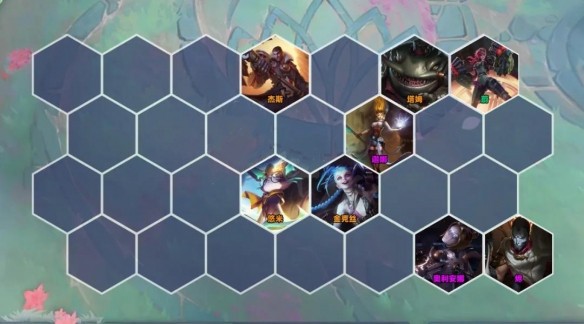 这套阵容实际上就是白魔狙的升级版,用3张橙卡(金克斯、杰斯、塔姆)替代了白魔狙中的布隆、女枪、宝石,蔚则是作为羁绊工具人代替了白魔狙中的另一个保镖(机器人或曙光),这样在用橙卡提升阵容上限的同时也保证了下限,D不到卡就直接变成白魔狙,吃个烂分还是容易的。