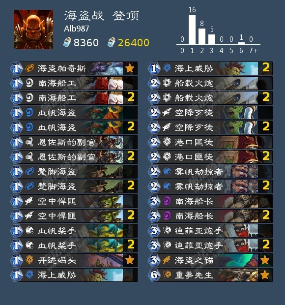 Alb987作为2017年狂野公开赛的冠军,在海盗之锚上线后长达数年的时间都能在月初用海盗战上到前5以内,属于是真正的常青树。