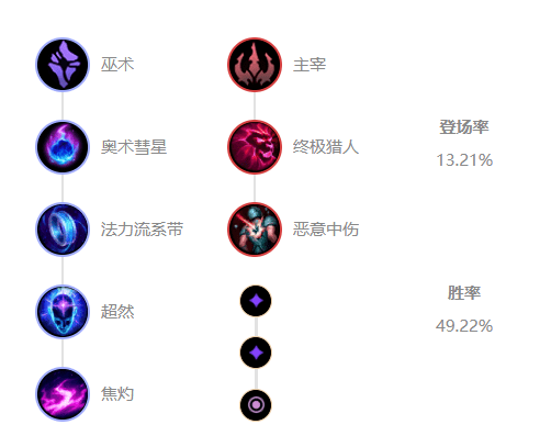 奥术彗星配合上泽拉斯的技能可以很好地消耗敌方英雄,法力流系带可以为泽拉斯提供额外的法力加成,超然提升泽拉斯的冷却缩减,焦灼提升泽拉斯的额外技能伤害。副系主宰,终级猎人为泽拉斯提供更短地大招时间,恶意中伤使敌方英雄在被减速、控制时受到额外真实伤害。