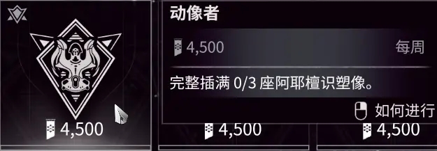 插满3个阿耶檀识塑像:MOD操作台点阿耶檀识宝物。目前雕像的来源有地图随机掉落(地球MARIANA掉率极高,可以用黄金本能找)、突击奖励、仲裁轮次奖励、仲裁/殁世械灵集团声望兑换、MAROO的周常任务。
