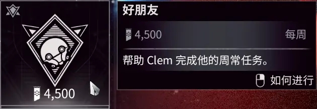 帮助CLEM:在中继站DARVO处接取任务,生存10分钟就好。